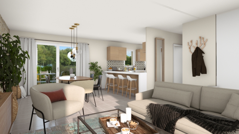 Cette maison très lumineuse et bien agencée est 100% personnalisable. Au rez-de-chaussée de cette maison une entrée mène à une cuisine ouverte sur un salon-séjour et un WC séparé. A l’étage, la partie nuit se compose de 3 chambres et une salle de bains. Un garage double et un cellier viennent compléter les prestations de ce modèle.