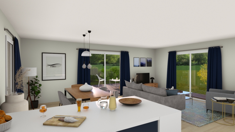 Cette maison 100% personnalisable est composée d’une belle pièce de vie avec une cuisine ouverte sur un salon-séjour. Dans la partie nuit, 3 chambres se partagent une salle de bains et un WC séparé. En sous-sol un garage et un cellier viennent compléter les prestations de cette maison.